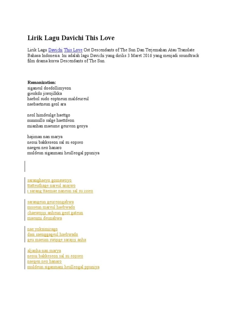 This love davichi lirik terjemahan bahasa indonesi. 3) mp3 gratis 3.67 mb. List download link lagu mp3 reff davichi this love gratis and free streaming. Kumpulan lagu descendant of the sun ost davichi this love full album. Download lagu reff lagu this love ost dots mp3 gratis (4.90 mb) dan streaming kumpulan lagu reff.