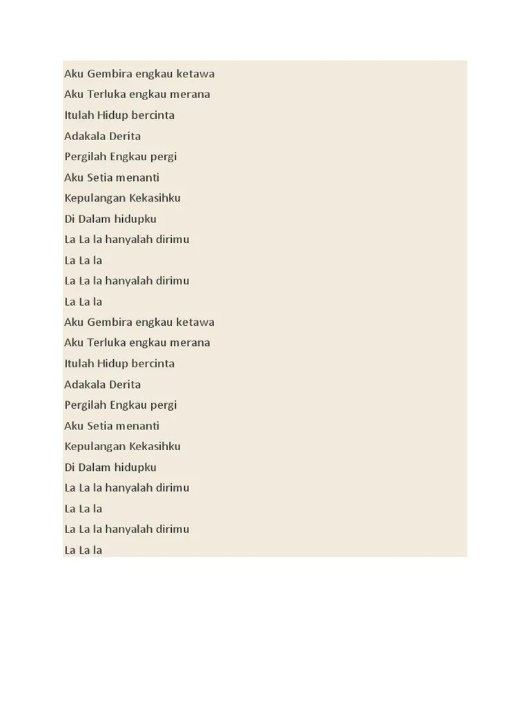 chorus a e pergilah kau pergi dari hidupku. Lirik dan chord lagu pergilah kau by sherina. Tak mau lagi aku terjerat. Pergilah kau pergi dari hidupku. A am bawalah rahasiamu yang tak ingin kutahui Pergilah kau pergi dari hidupku Lirik dan chord lagu pergilah kau. Download lagu pergilah kau pergi dari hidupku mp3 dan mp4 di travelagu 8.61 mb. Bawalah rahasiamu yang tak ingin ku tahui. C f tak mau lagi aku terjerat Tak mau lagi aku tertaut F fm bawalah rahasiamu yang tak ingin kutahui. Pergilah kau pergi dari hidupku bawalah semua rasa bersalahmu pergilah kau pergi dari hidupku bawalah rahasiamu yang tak ingin ku tahui.